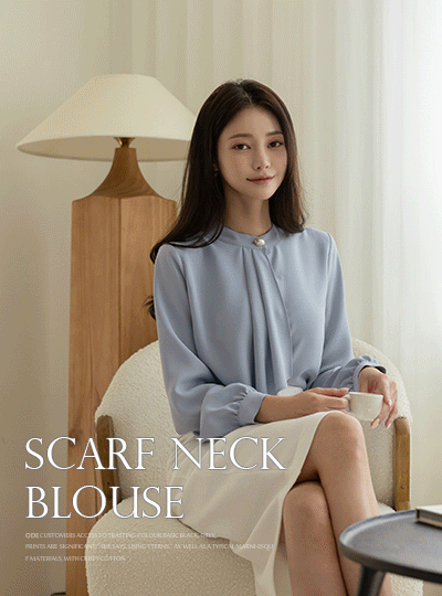 훌 スカーフネック 真珠 ボタン ブラウス