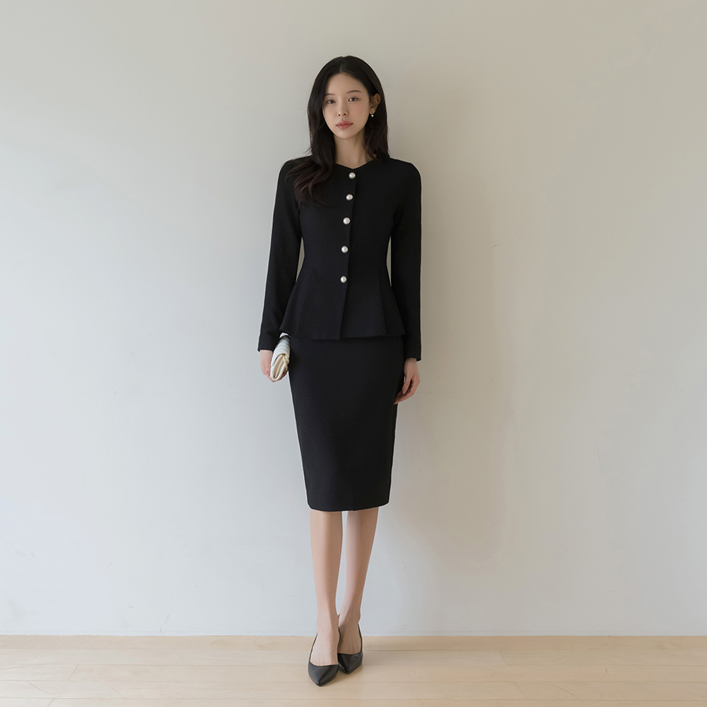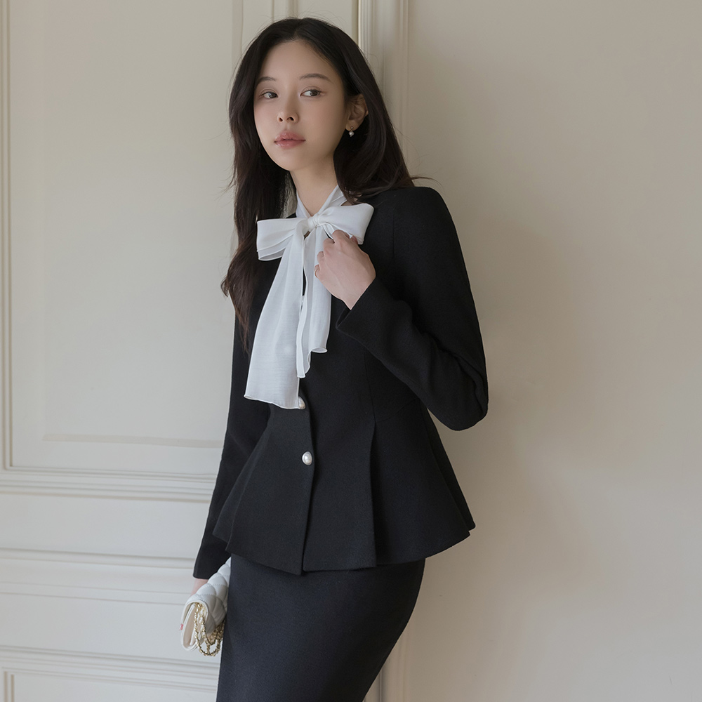 이프 真珠 ボタン ペプラム ジャケット