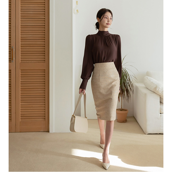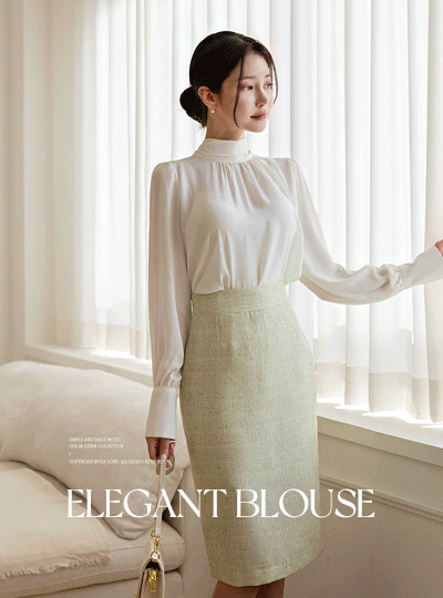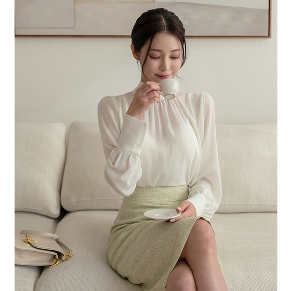 エレガンス 롤 スカーフネック シャーリング ブラウス