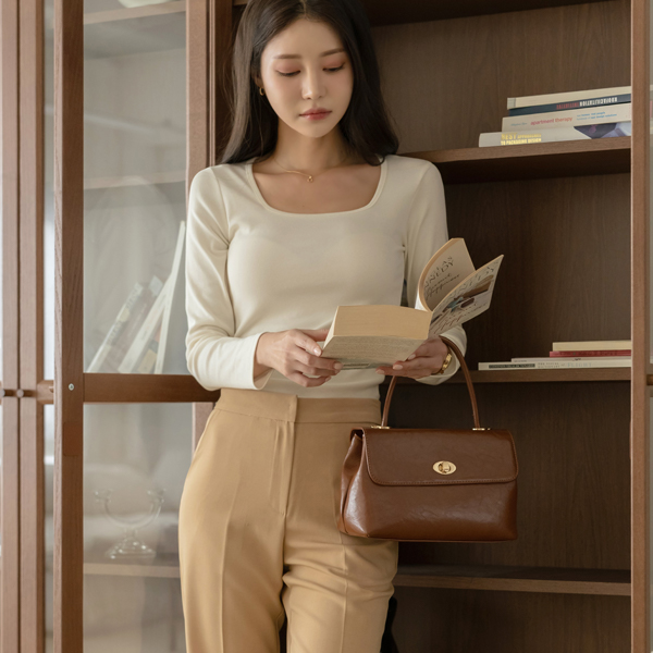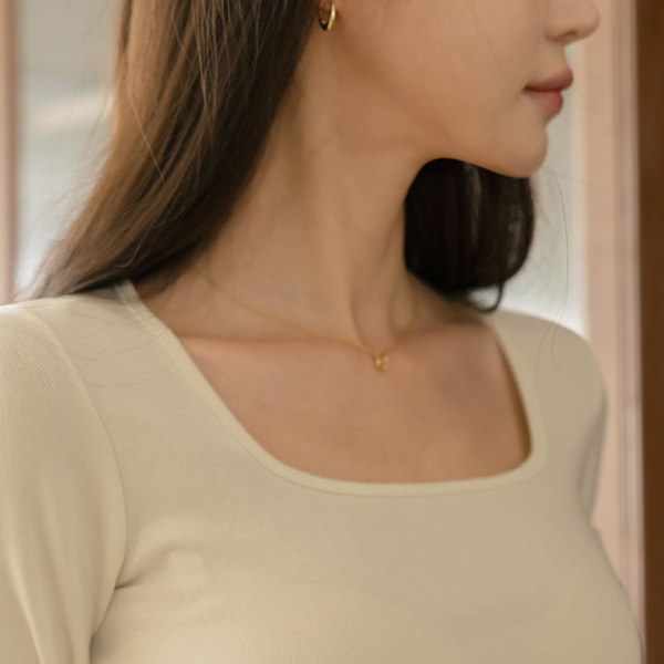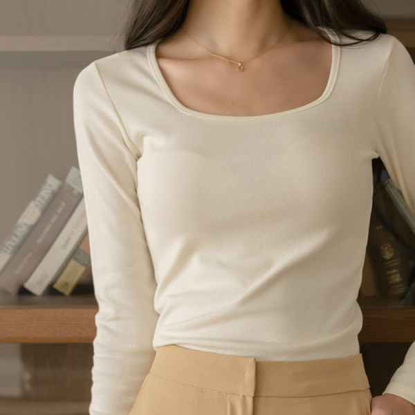 デーリー スクエアネック コットン モダール 弾力 ティーシャツ