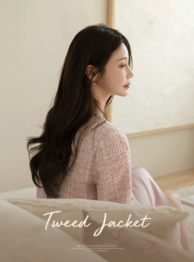 ロマンチック 春季 カラー ミックス ツイード ジャケット