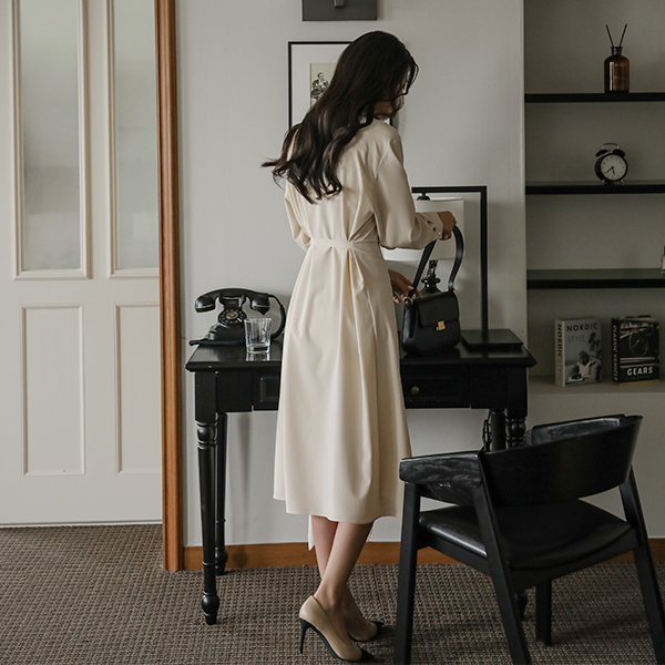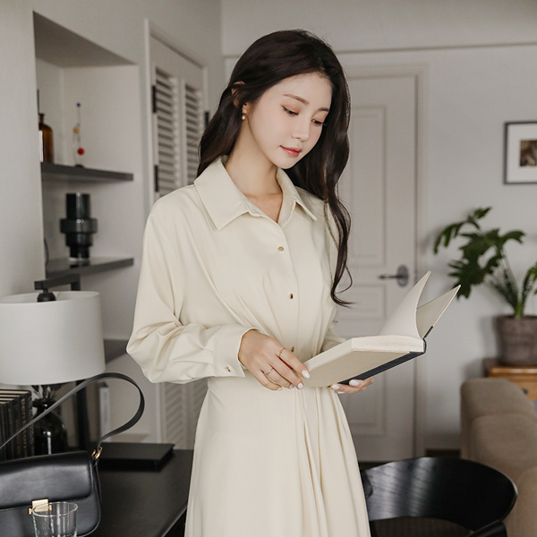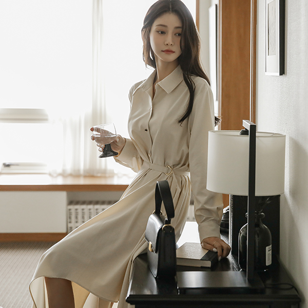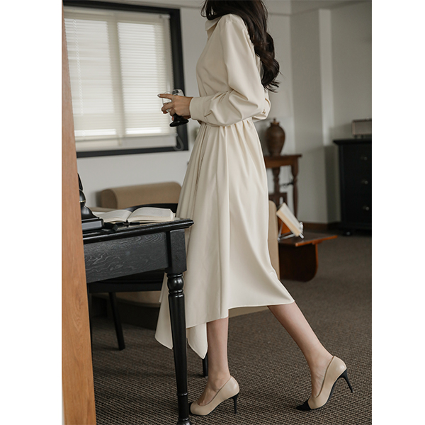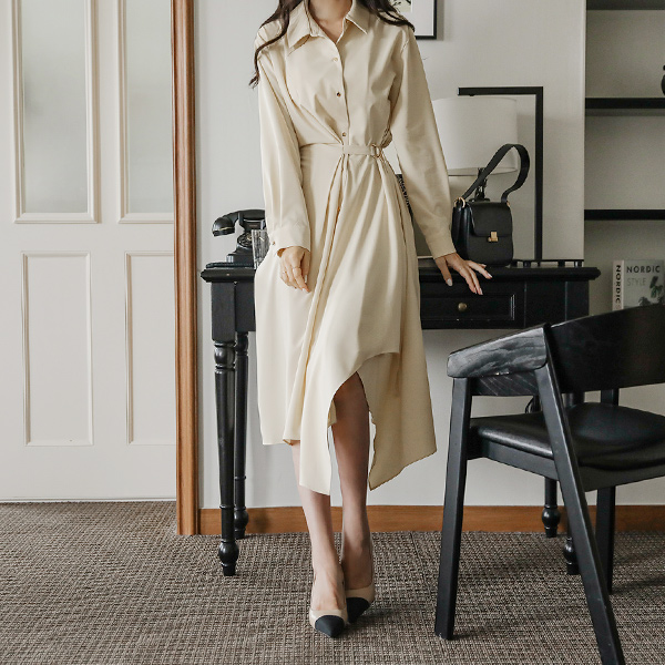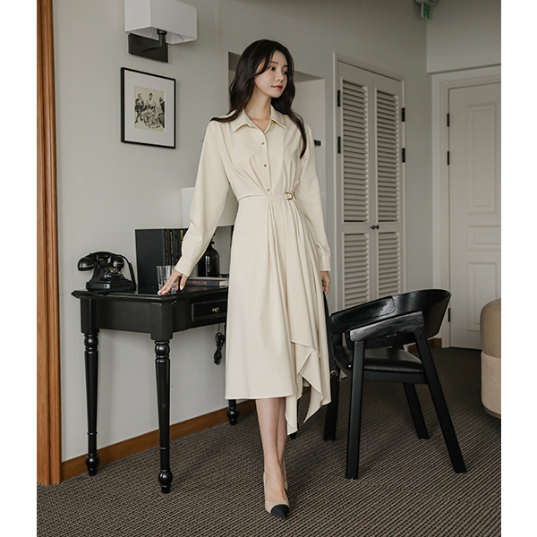 シャツ カラー サイド バックル ポイント アンバランス ロング ワンピース