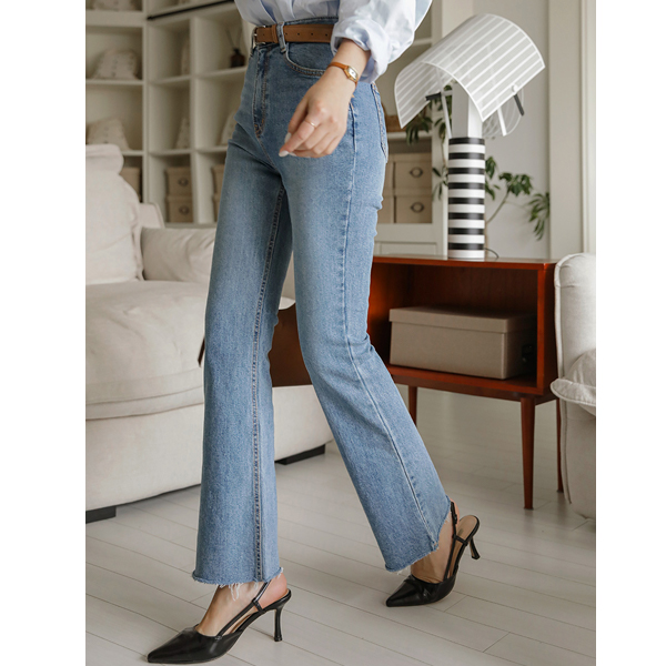 デーリー 裾上 カッティング スリム ブーツカット デニム パンツ