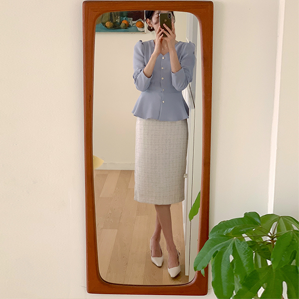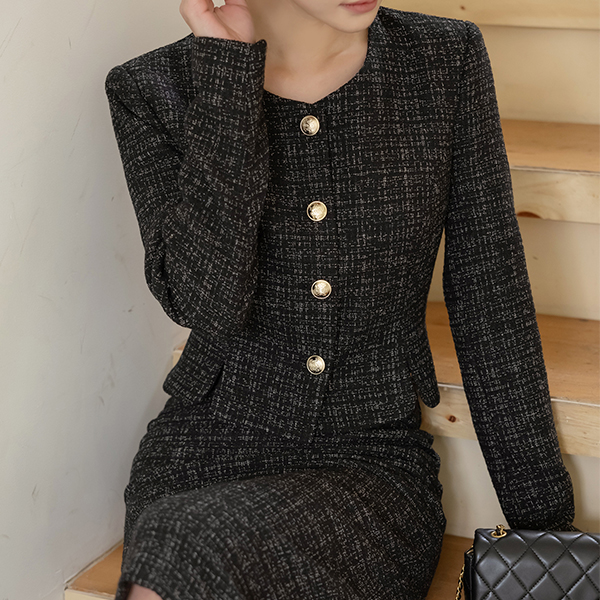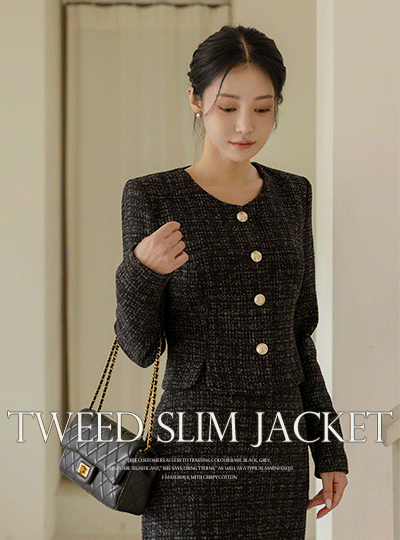 リナ ラウンドネック ゴールド ボタン ツイード スリム ジャケット