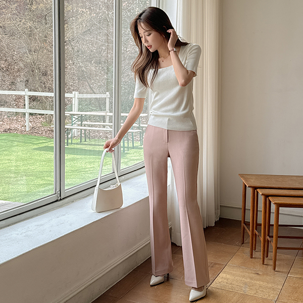 ミニマル ほっそりした スクエアネック 基本 半そで ニット