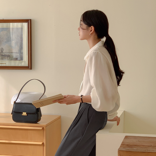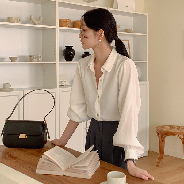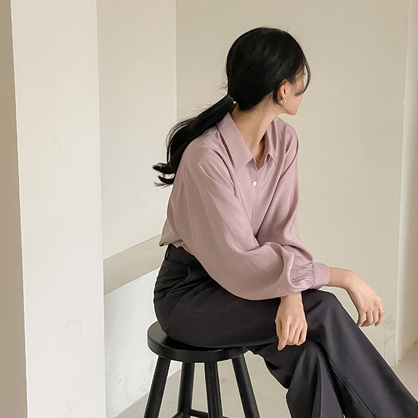 モダン サテン 螺鈿 ボタン モダール ブラウス