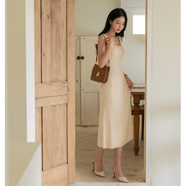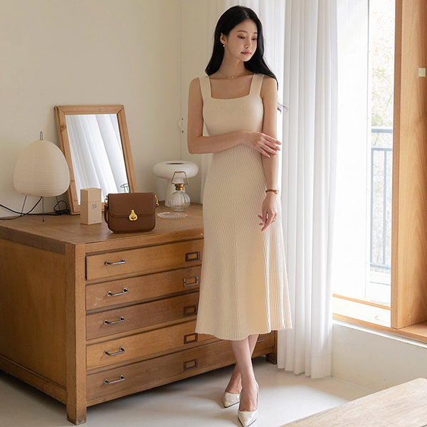 ビスコース ニット コール天 袖なし フレア ロング ワンピース