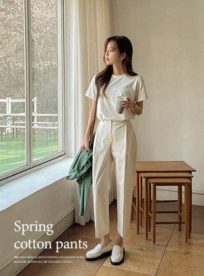 メモリー ピンタック ポイント 9分 コットン パンツ