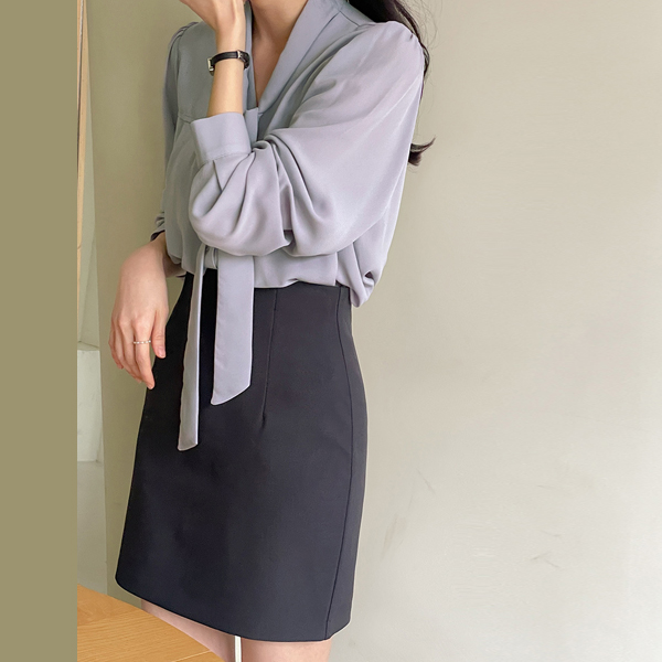 春季 カラー シンプル ブイネック タイ ブラウス