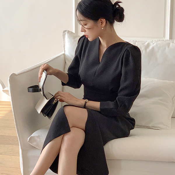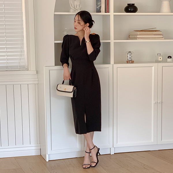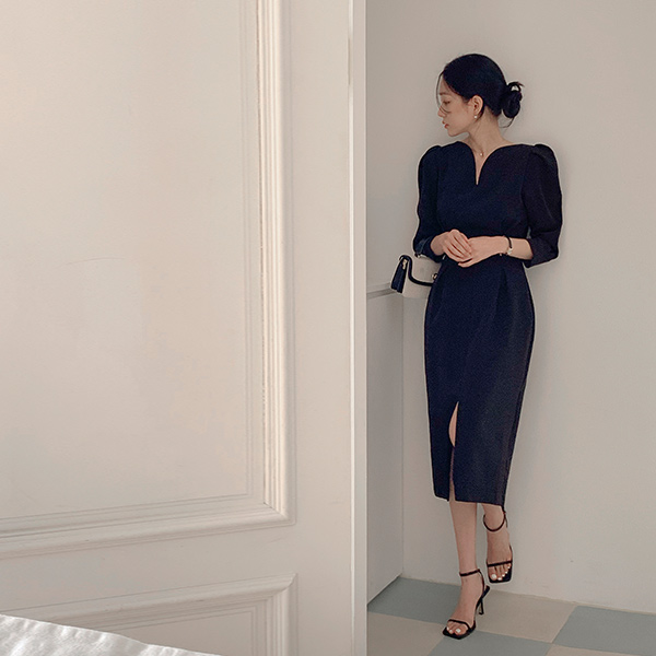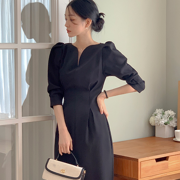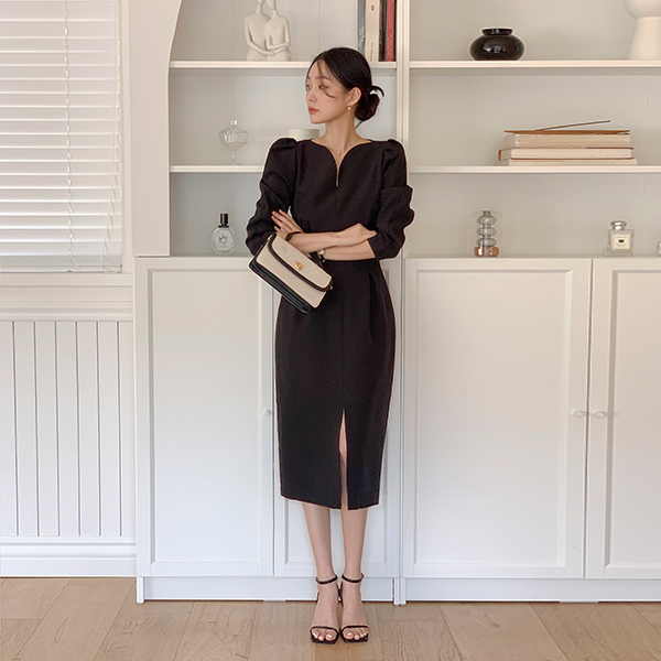 ロマンチック ハートネック パフ 袖 前面切開 ワンピース