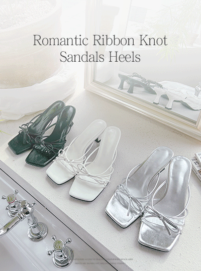 ロマンチック リボン しめくくり サンダル ヒール