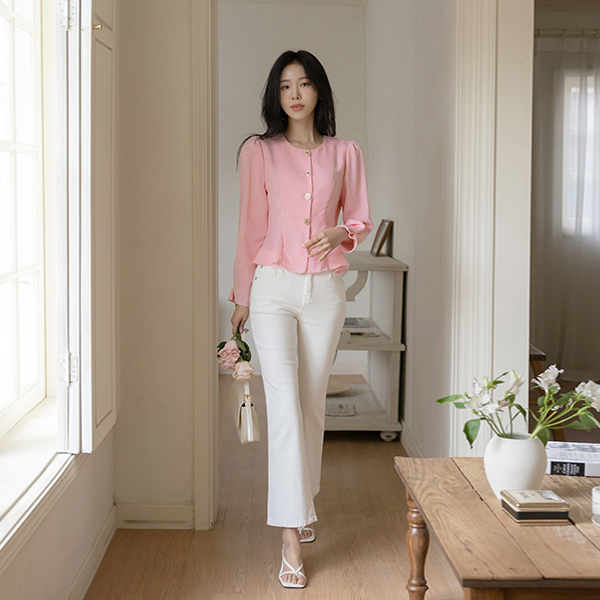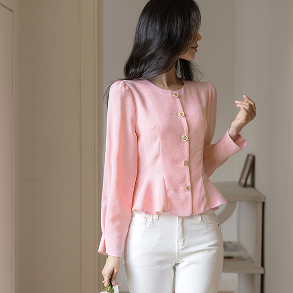 ロマンチック ペプラム ツイード ブラウス