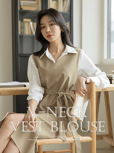 그레타 ブイネック 細かく美しい ベスト ブラウス (ベルトSET)