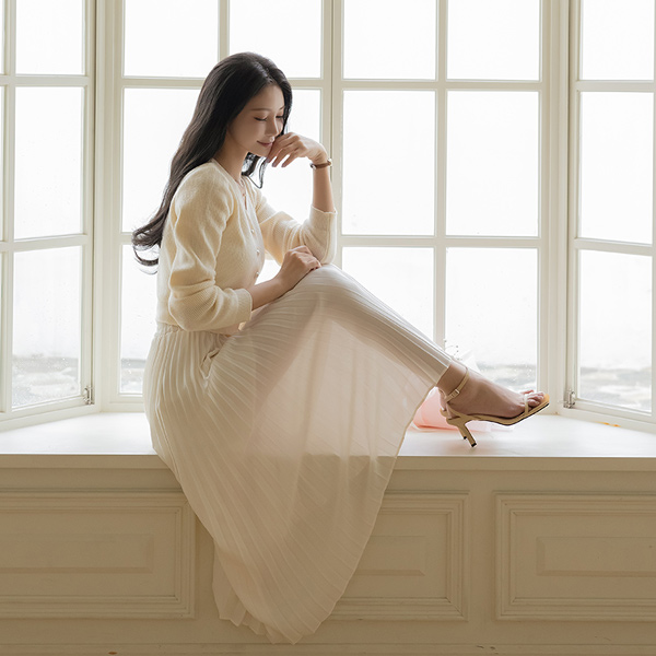 デーリー 잔플리츠 バンディング ロング スカート