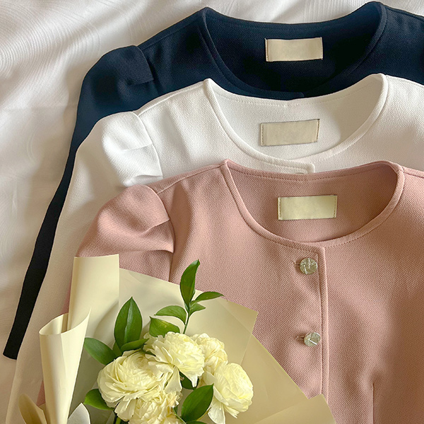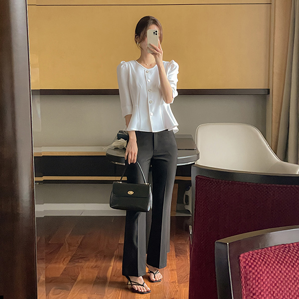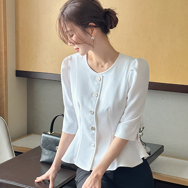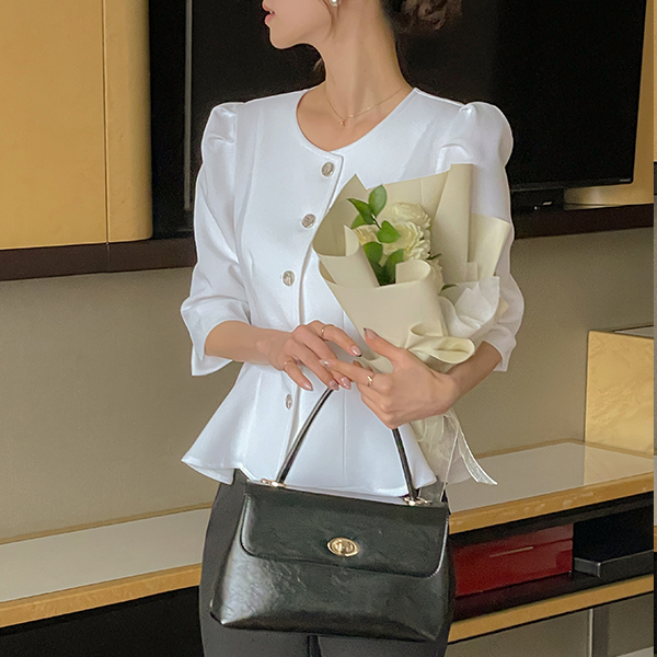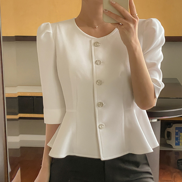桜花 パフ 袖 ペプラム ライン ブラウス