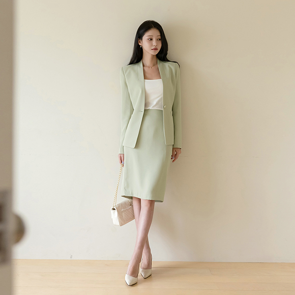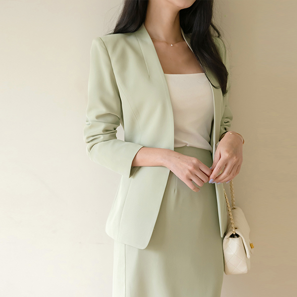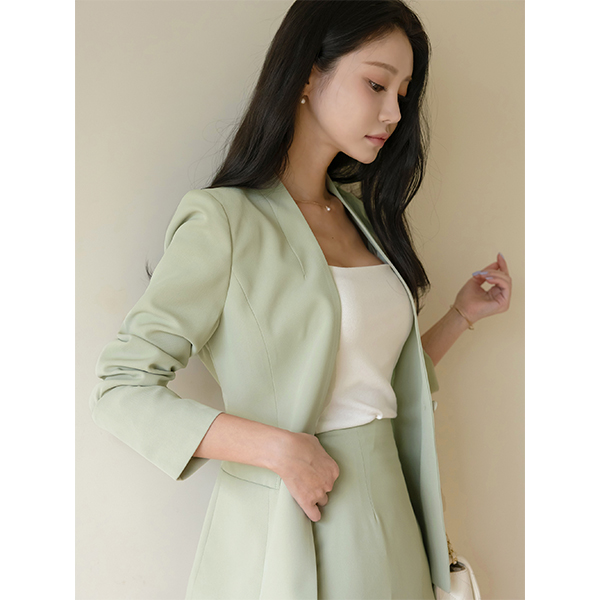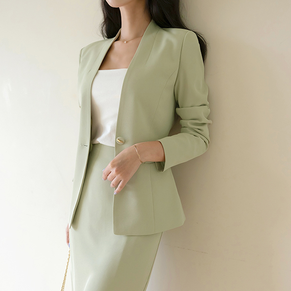 시오 ノーカラー スリム ライン ワンボタン ジャケット