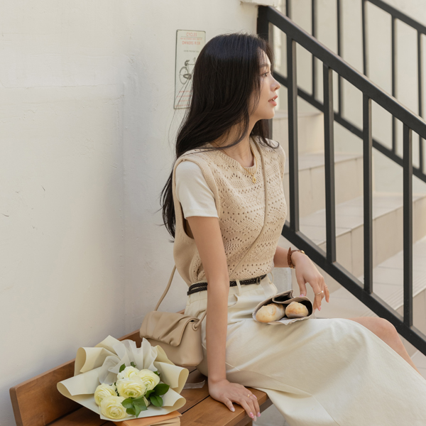 스토어 前 スリット コットン 後面バンド ロング スカート