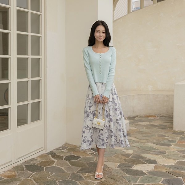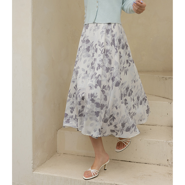 ピュア リーフ 捺染 後面バンド フレア スカート