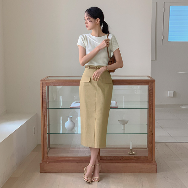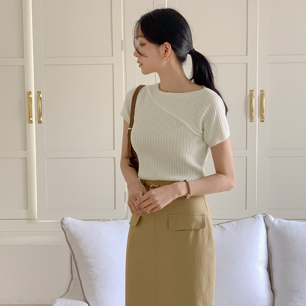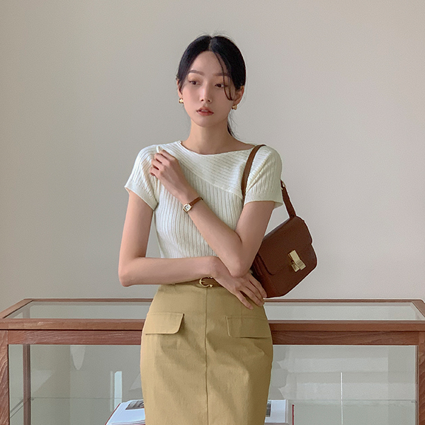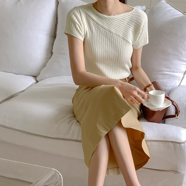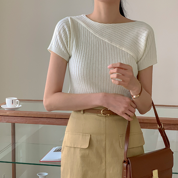 アンバランス 斜線 コール天 半そで ニット