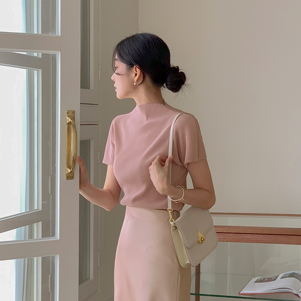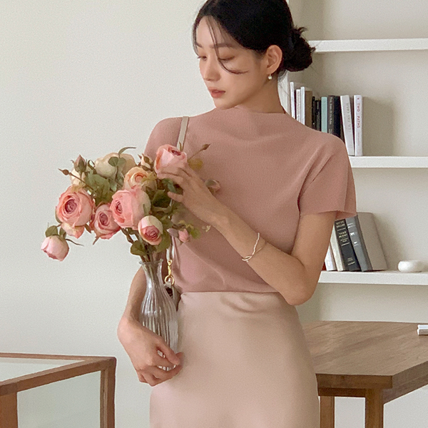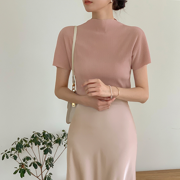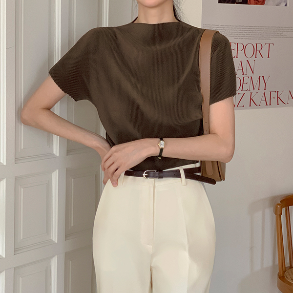 나노 プリーツ ハーフネック キャップップ ブラウス