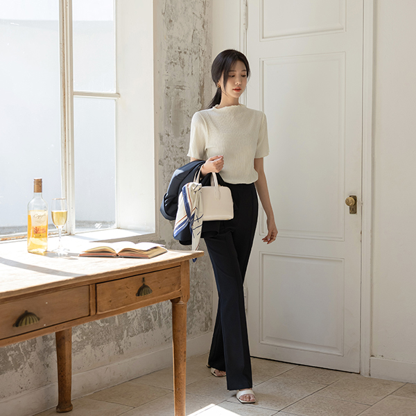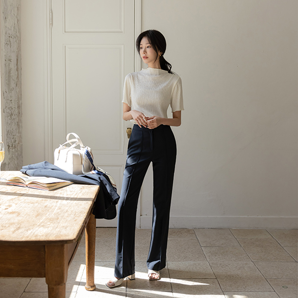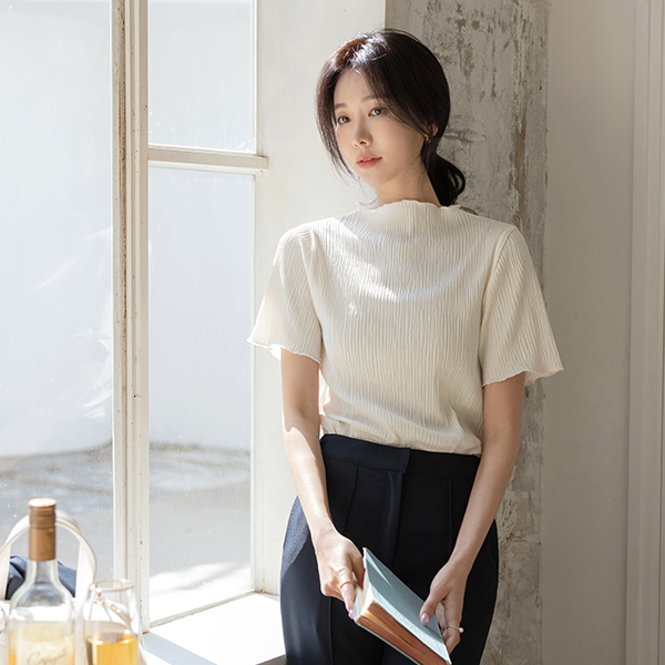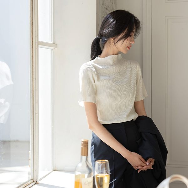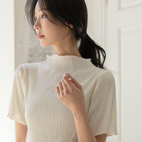 ウエーブ リンクル ファブリック セミハイネック ティーシャツ