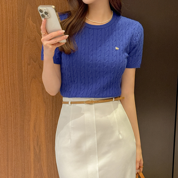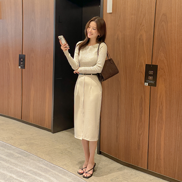 ほっそりした ネックライン バンブー スリムコール天 ニット
