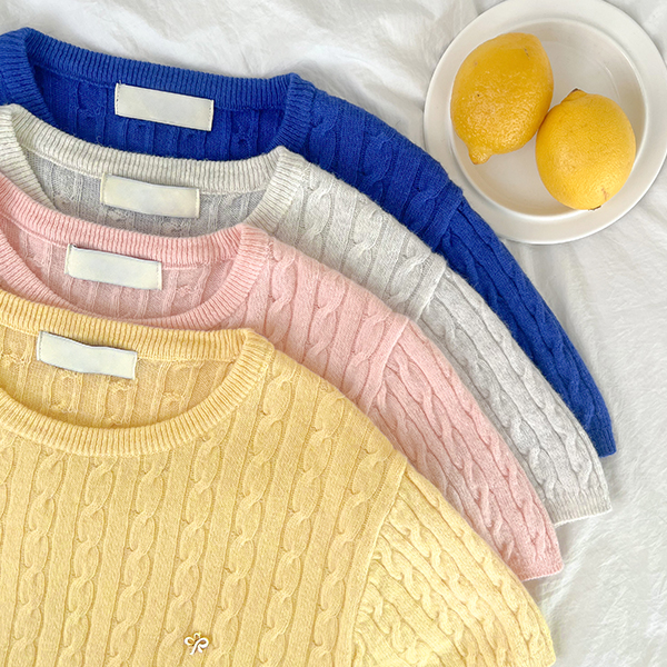 カシミア ウール リボン 심볼 캐이블 ニット