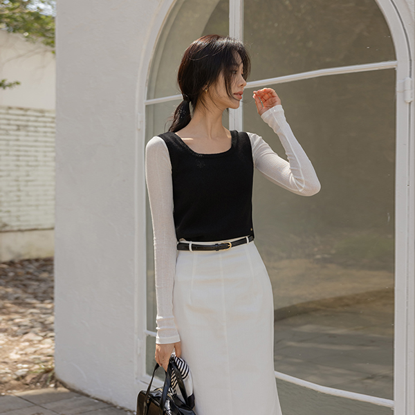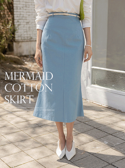 細かく美しい CHIC マーメイド コットン スカート (ベルトSET)