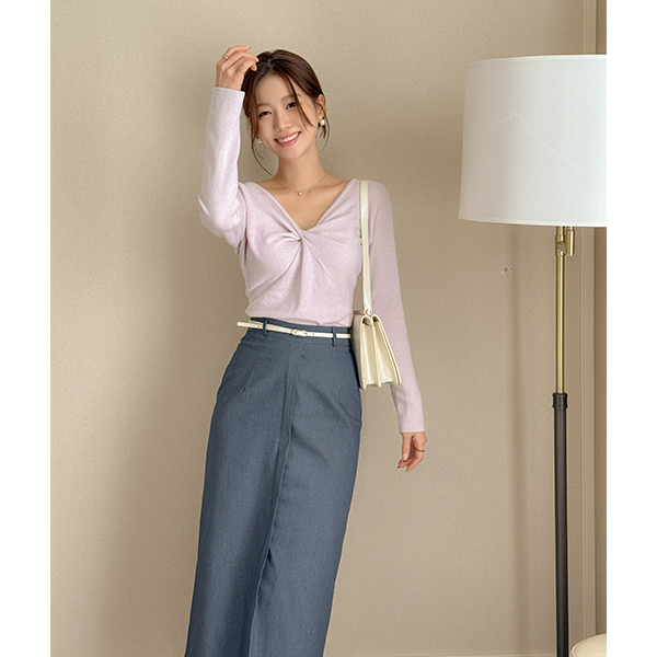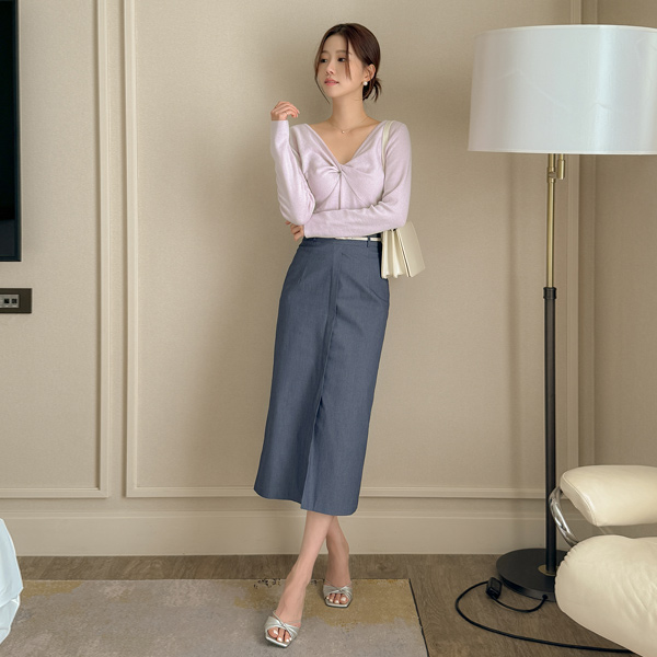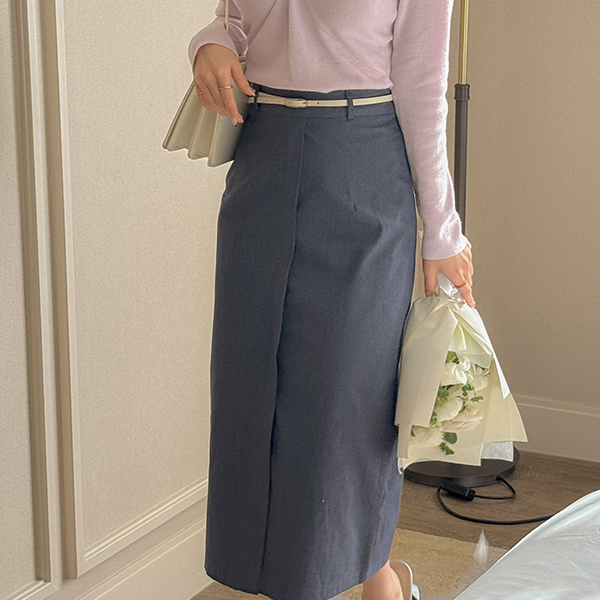 シングル 切開 デニム 페브릭 弾力 Hライン スカート