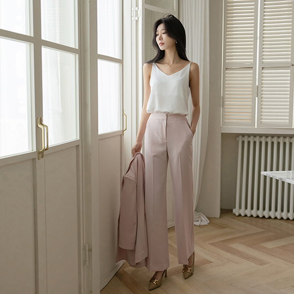 サテン ダブル ファブリック シンプル 紐 袖なし ブラウス
