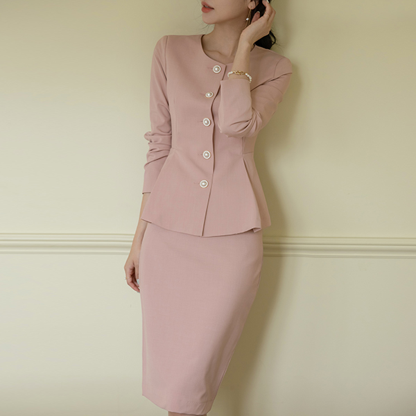 베라 真珠 ボタン 핀탁 ペプラム Set-up ジャケット