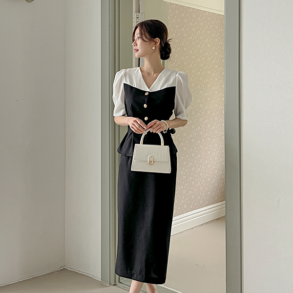 メロディー 配色 ペプラム Set-up ブラウス