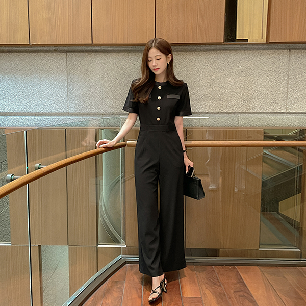 コンビ エレガンス ゴールドボタン Black ジャンプスーツ