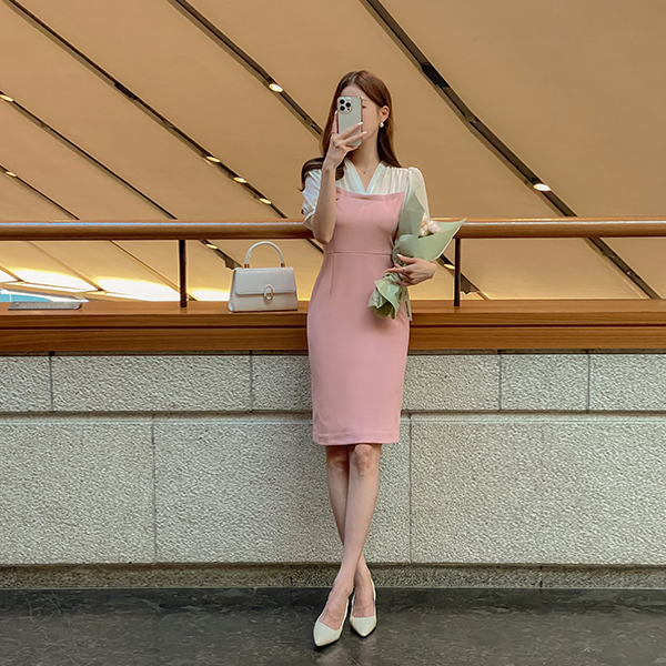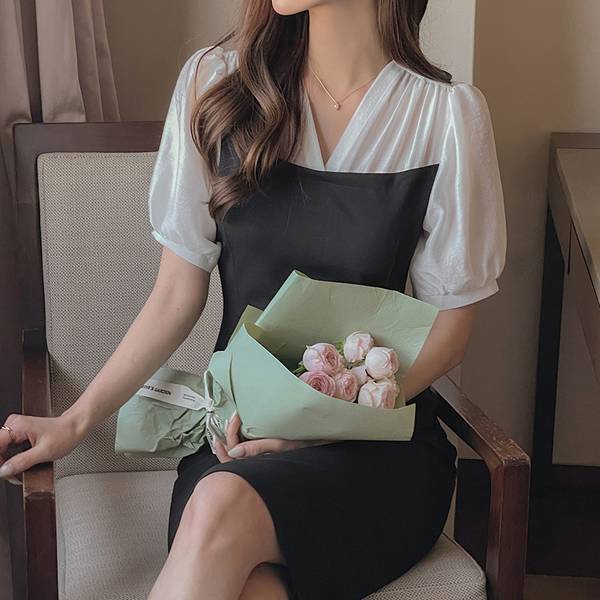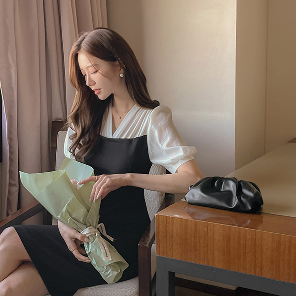 [O:neul] シャーリング ブラウス 레이어링 愛着 弾力 ワンピース