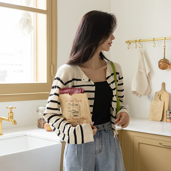 무빙 ストライプ 着心地のいい サマー ニット カーディガン