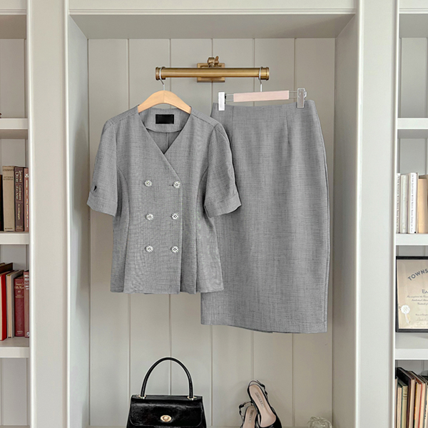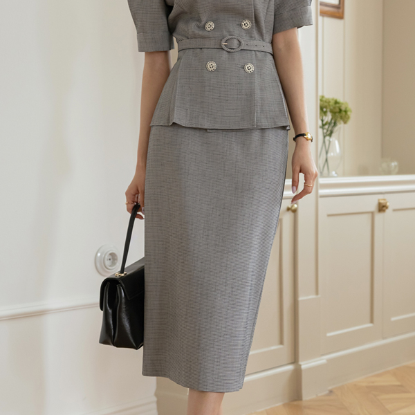 ODE 小さなチェック スリム Hライン ツイード スカート