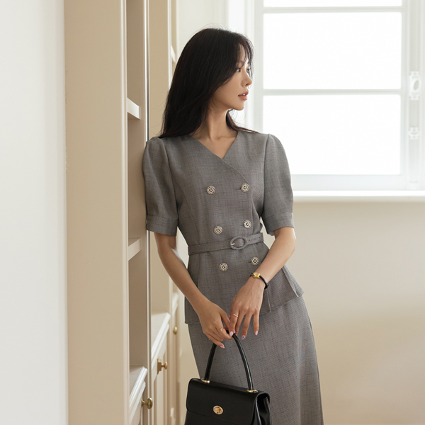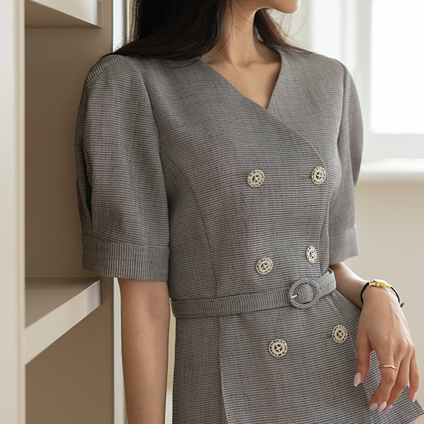 ODE 小さなチェック パフ袖 ツイード ジャケット