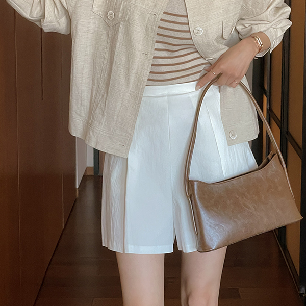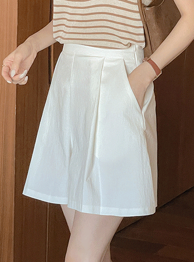 单 ピンタック Aライン 適合 さらさら ハーフ パンツ