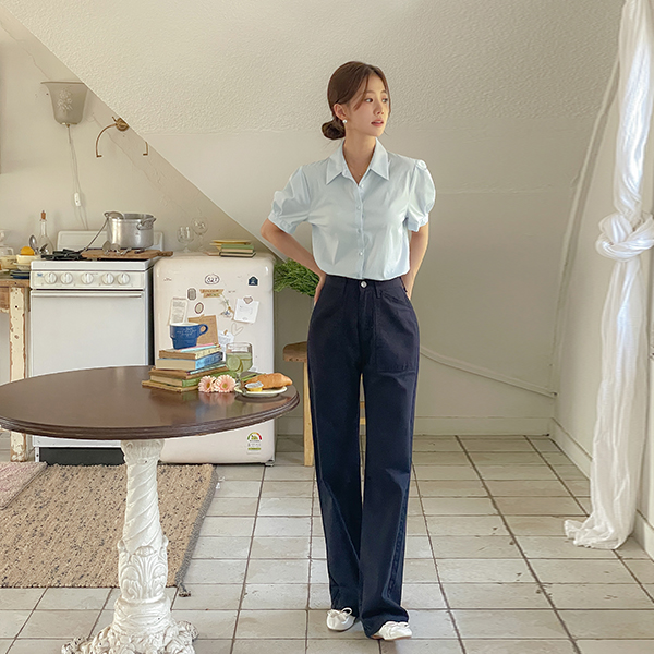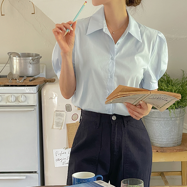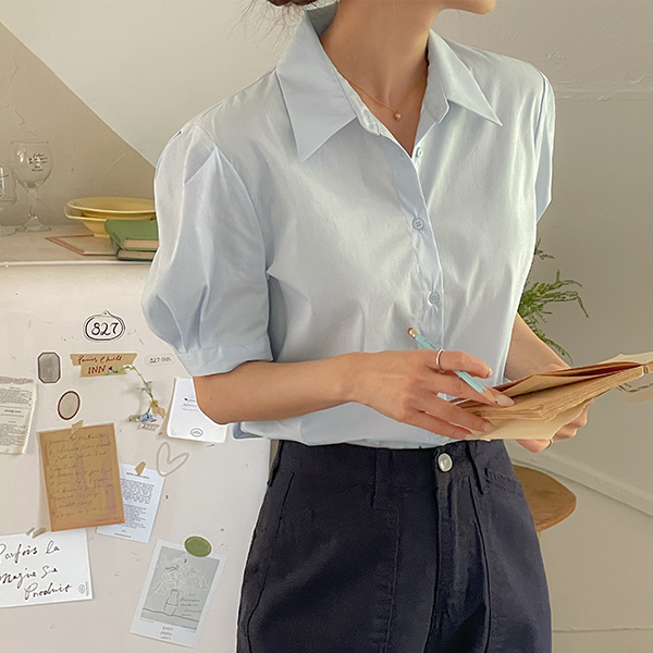 細かく美しい Cheese 弾力 パフ袖 シャツ ブラウス
