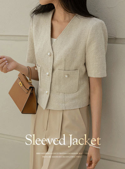 Olive ツイード クロップド 半そで ジャケット