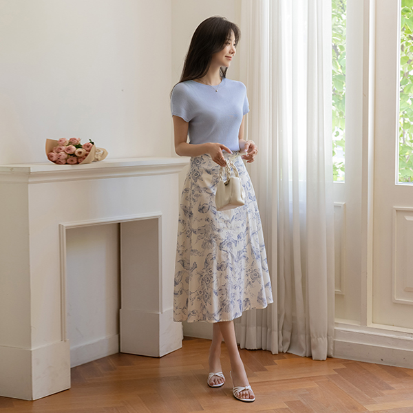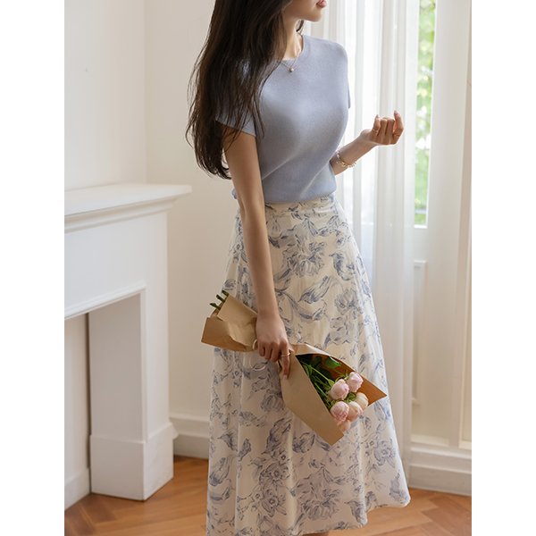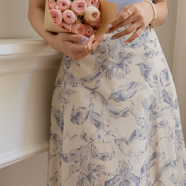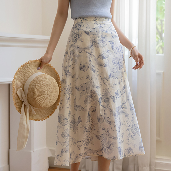 百合 水彩画 パタン 後面バンド Aライン スカート