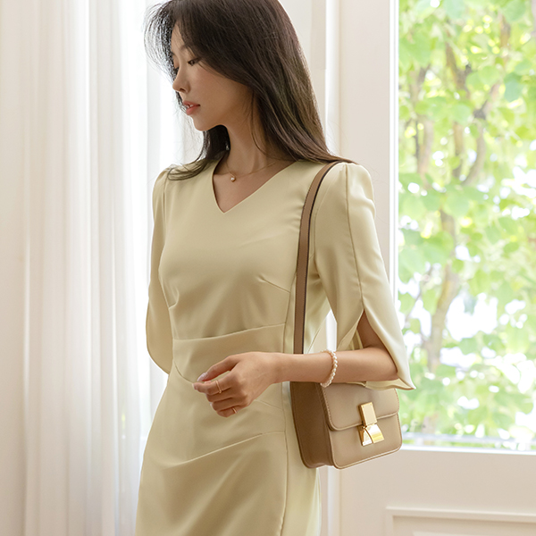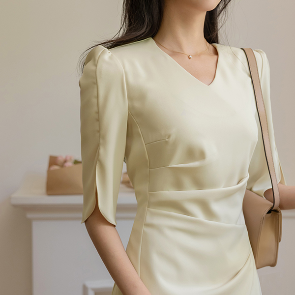 エレガンス シャーリング チューリップ 袖 ワンピース