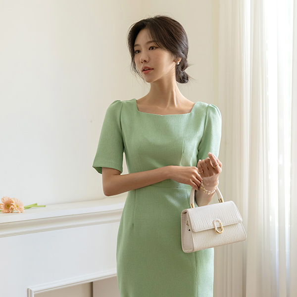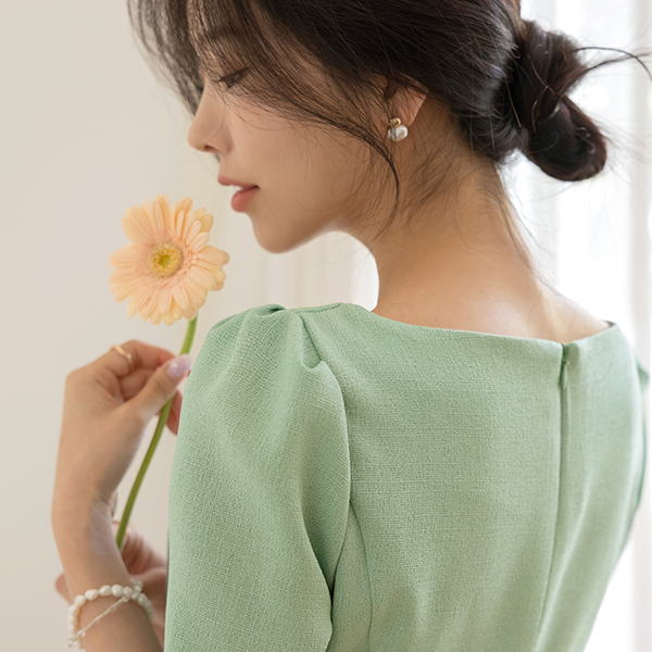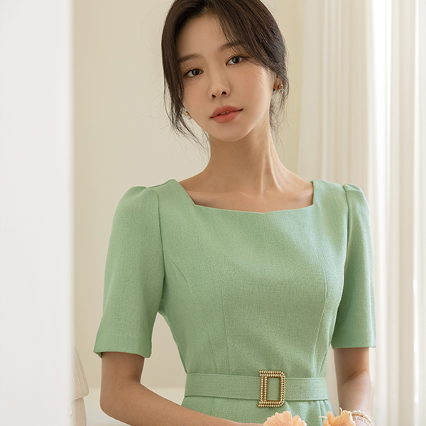 きらり ベルティード スクエアネック サマー ツイード ワンピース