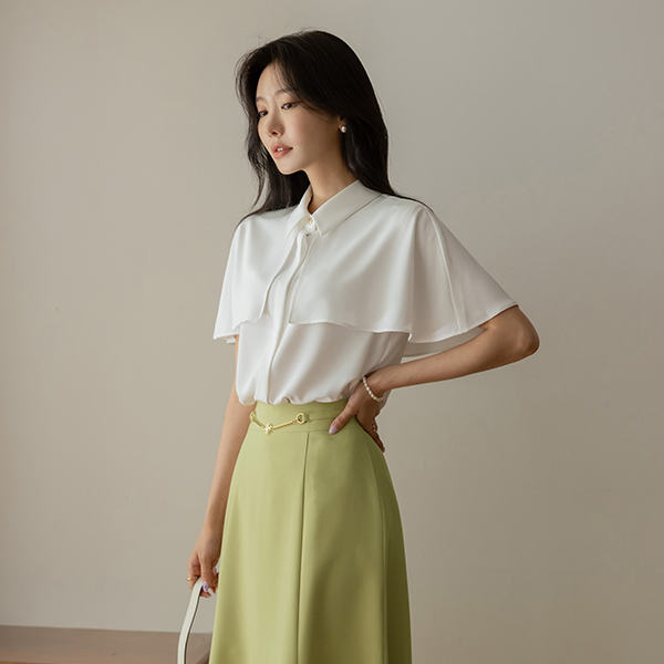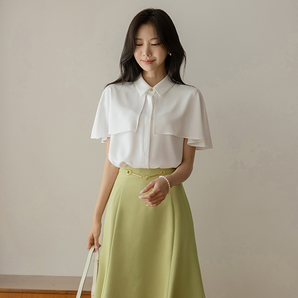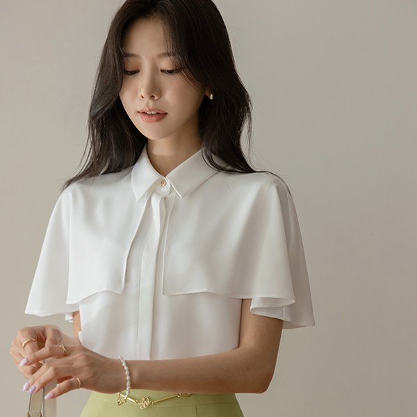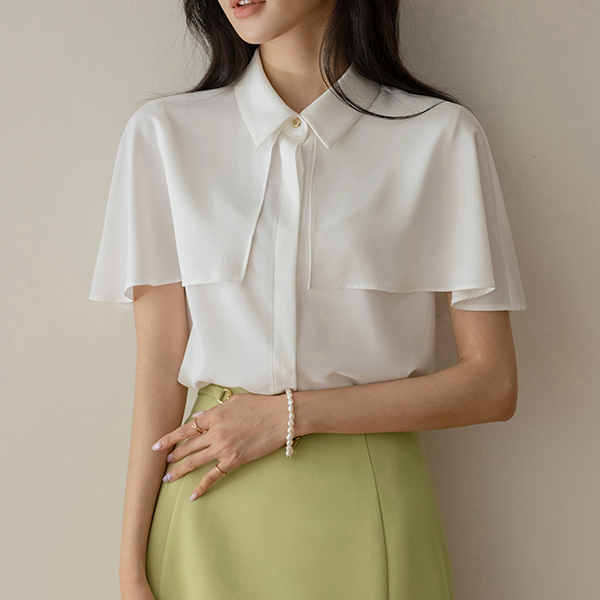 トップ ゴールド ボタン ケープ スタイル ブラウス