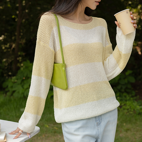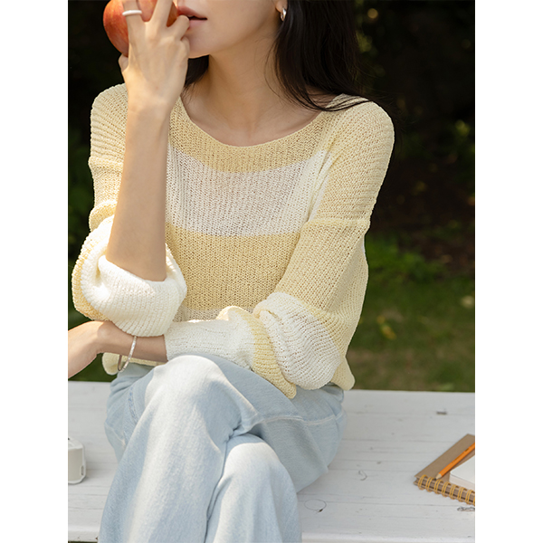バンビ ほっそりした ストライプ サマー ニット