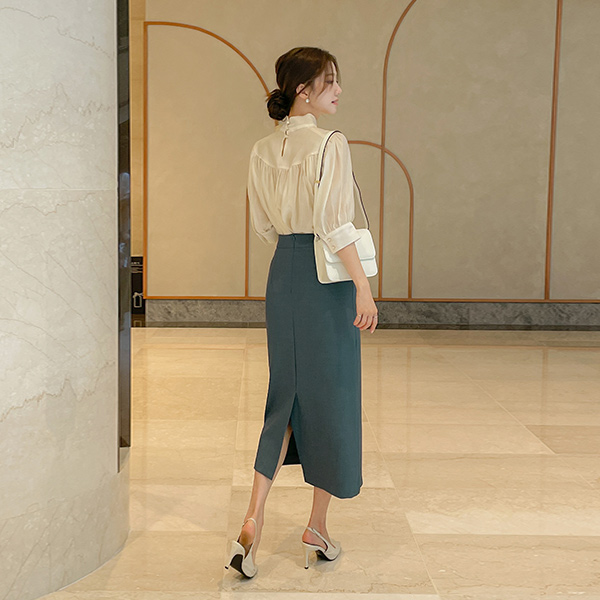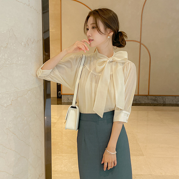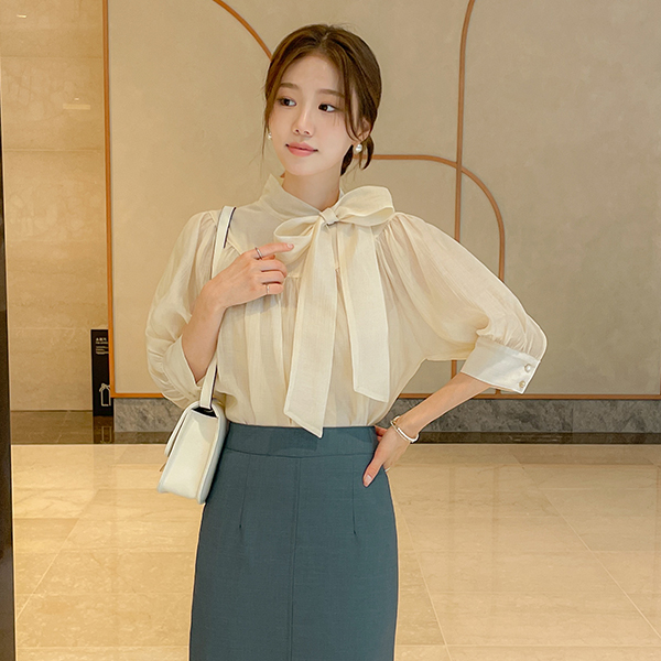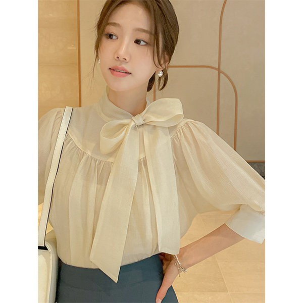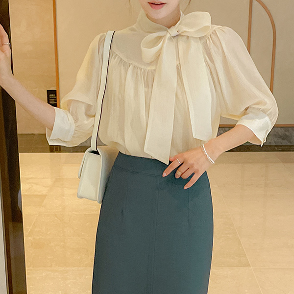 베로니 スカーフネック シャーリング ブラウス