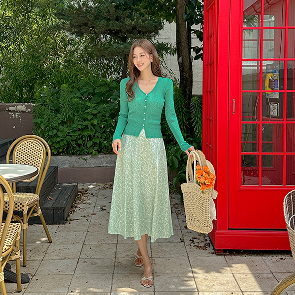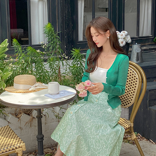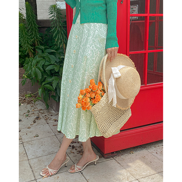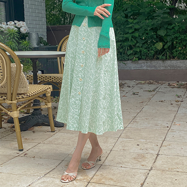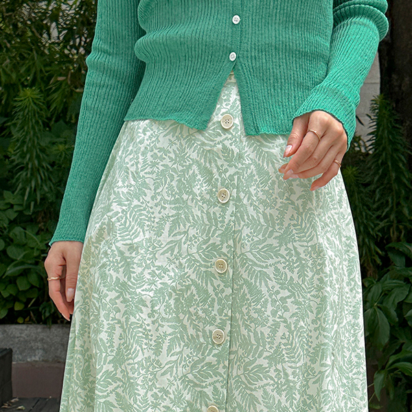 ネーチャー パタン ボタン フレア 後面バンド スカート