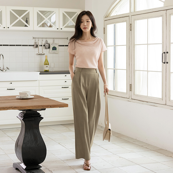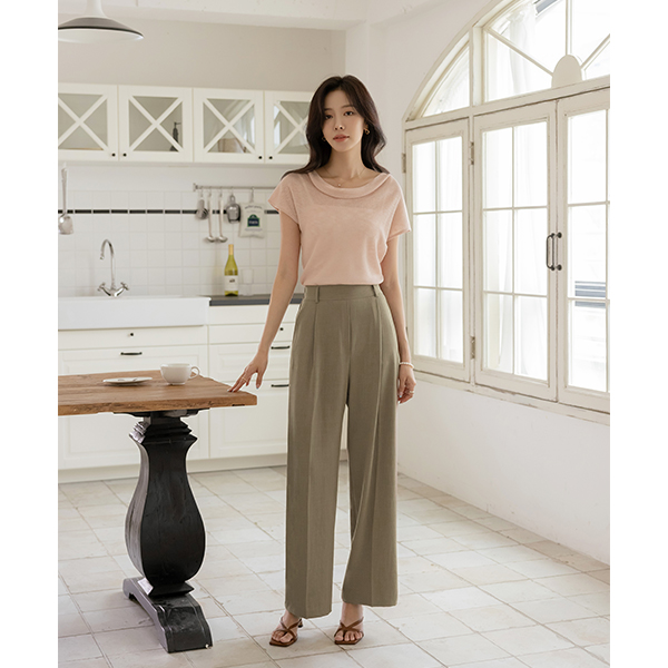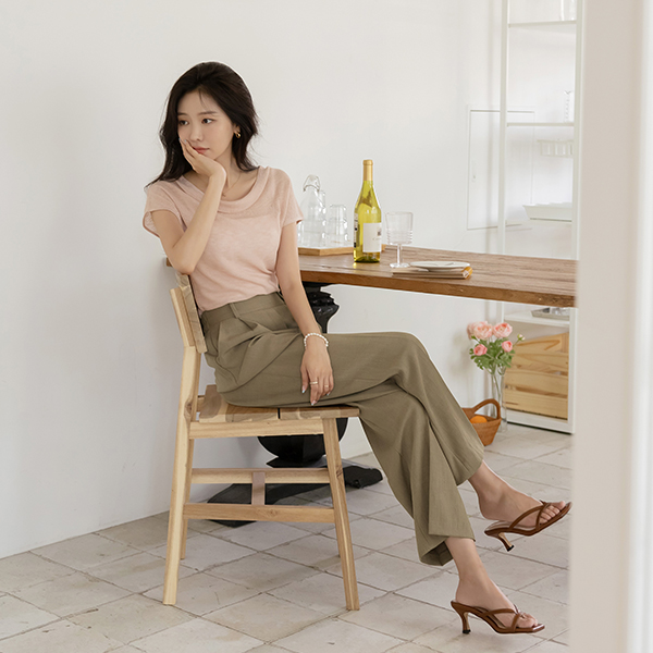ピンタック ワイド サマー リネン 後面バンド スレックス