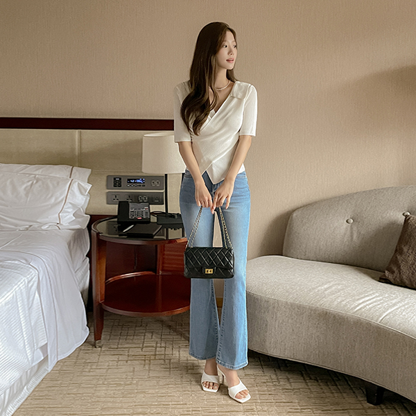 アンバランス シンプル ライン スリッパ ヒール