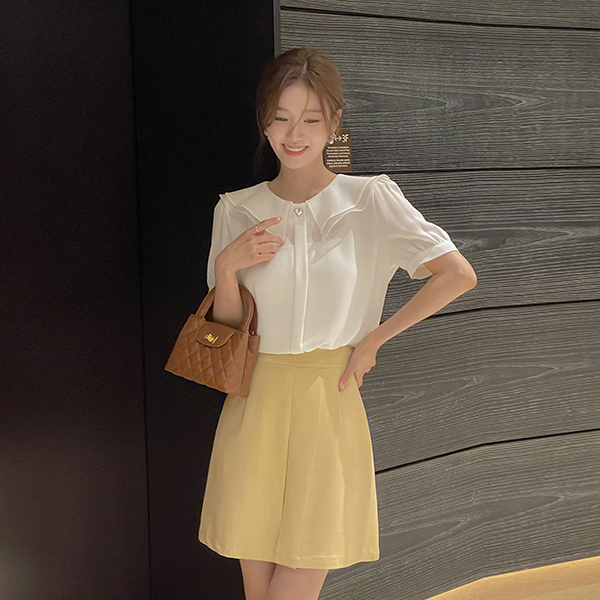 フリル カラーネック ハート ブラウス
